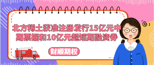 北方稀土獲準注冊發行15億元中期票據和10億元超短期融資券
